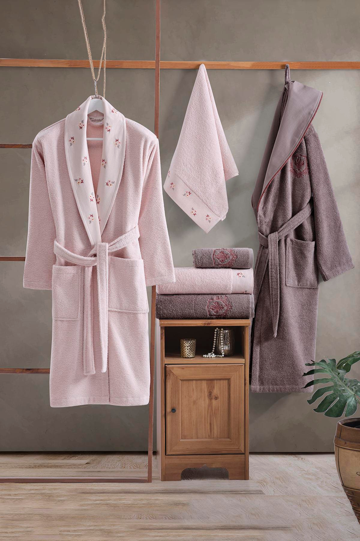 Lovely Aile Bornoz Seti Pudra - Mürdüm (OST92586)